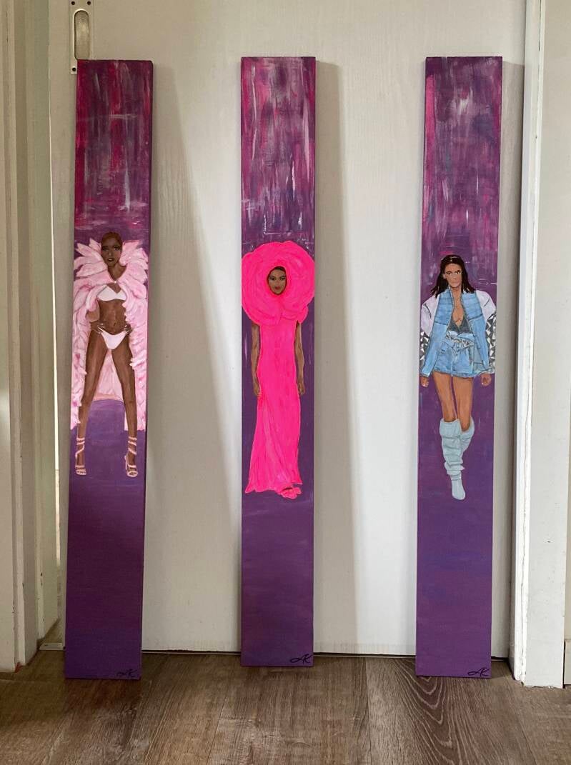 „Catwalk" Triptychon auf Holz..Mode als Performance- ein Laufsteg bei einem Fashion-Event. Von sinnlich und glamourös über exzentrisch-künstlerisch bis hin zu urban und urban und stark.